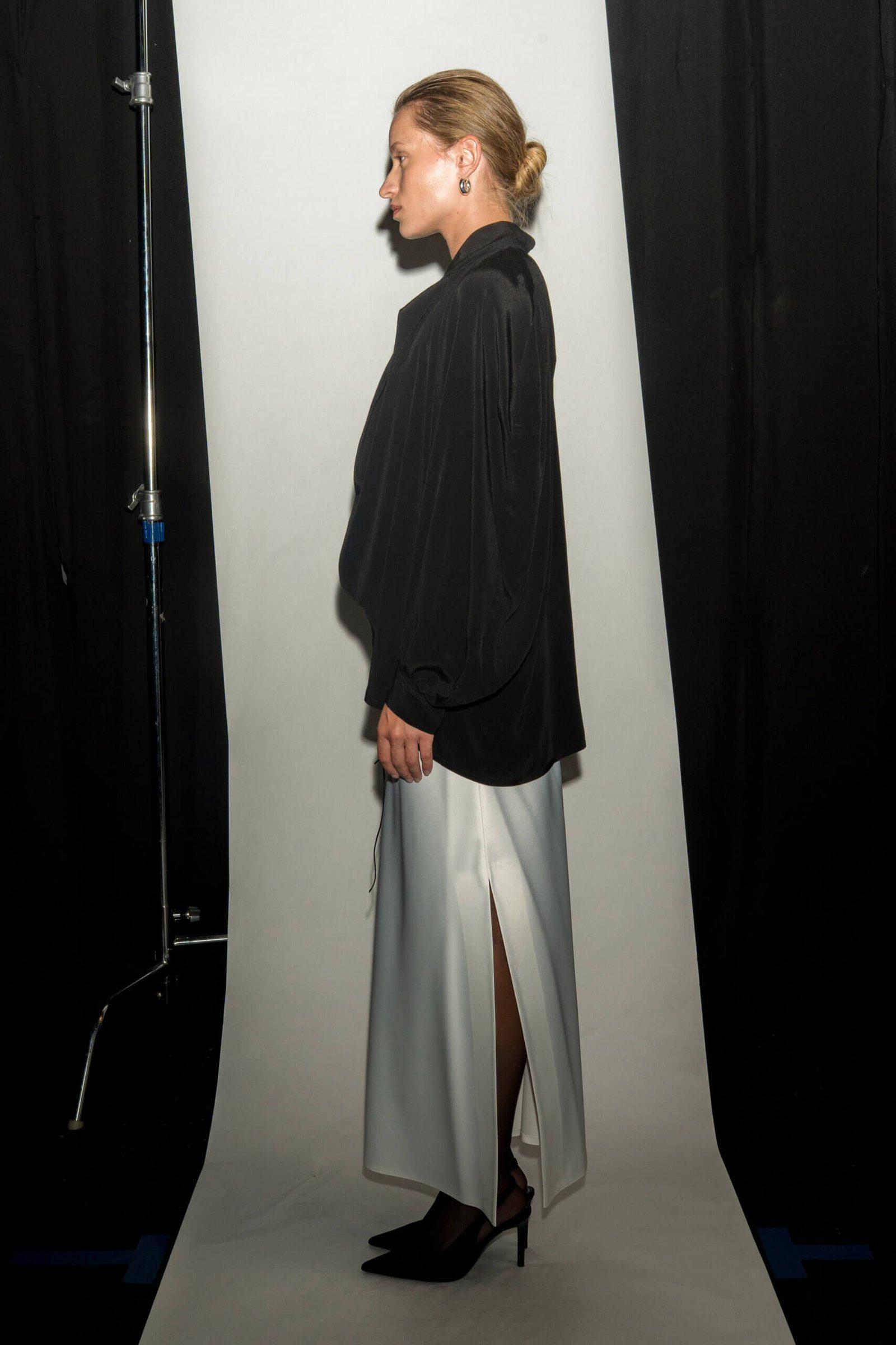 cleo- A softly draped blouse crafted from a lightweight, fluid fabric that moves effortlessly with the body.