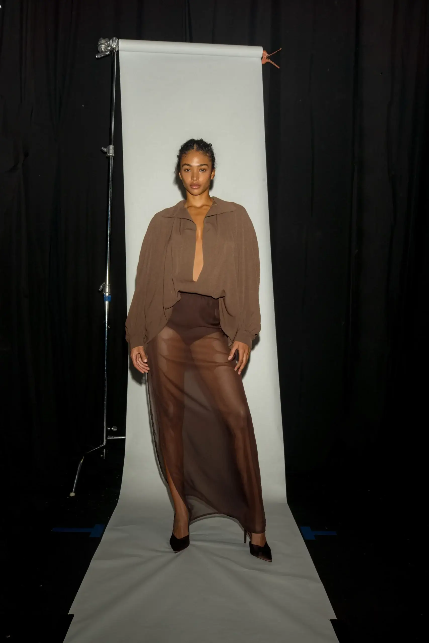Designed with a relaxed silhouette, subtle volume in the sleeves, and a deep, elongated neckline that creates a refined yet sensual line.