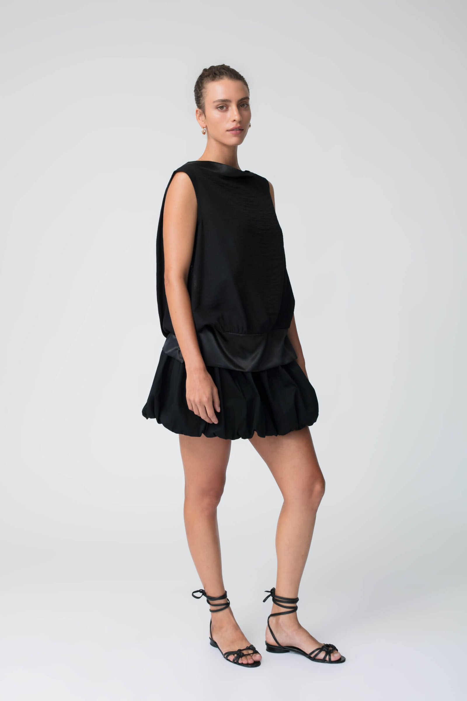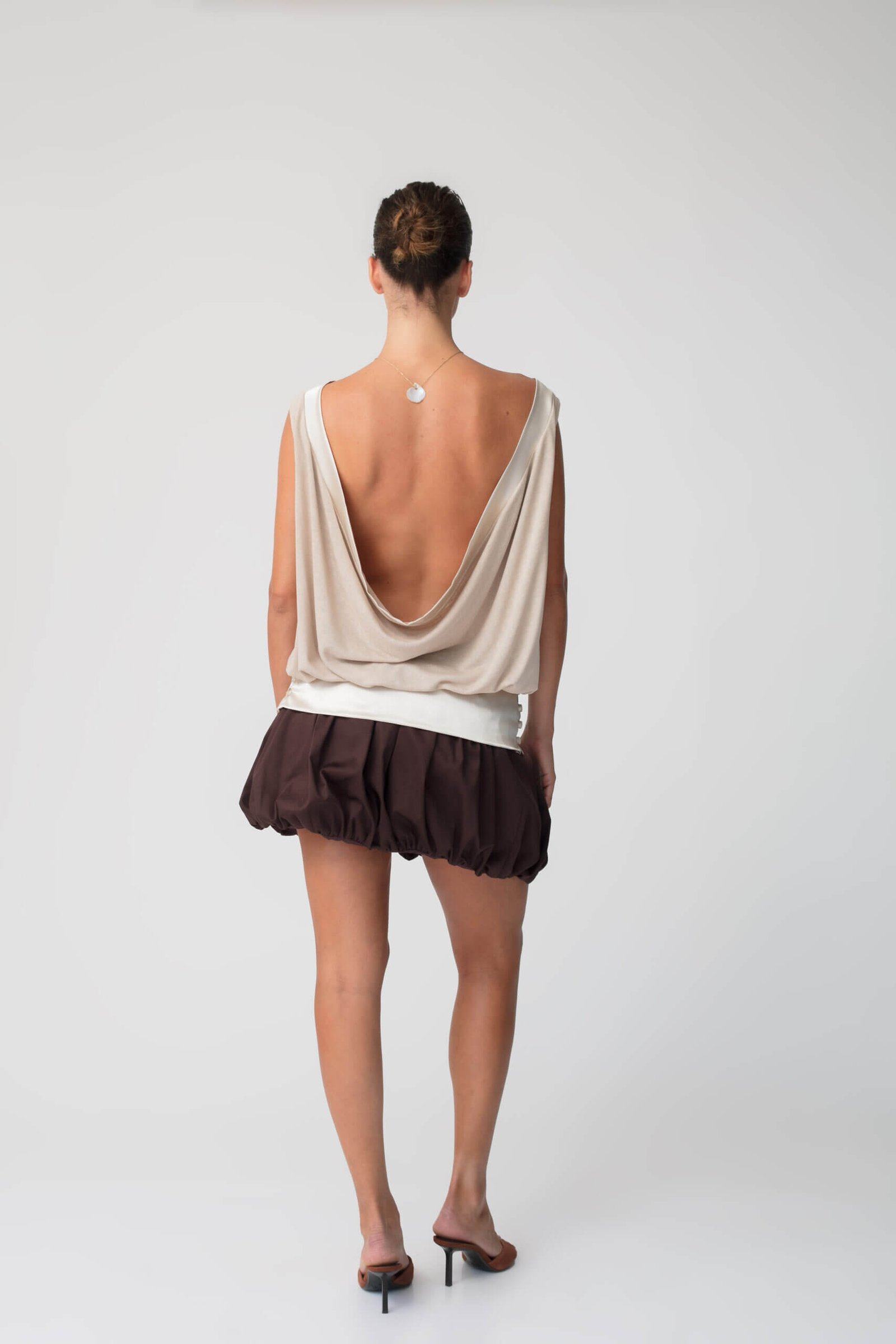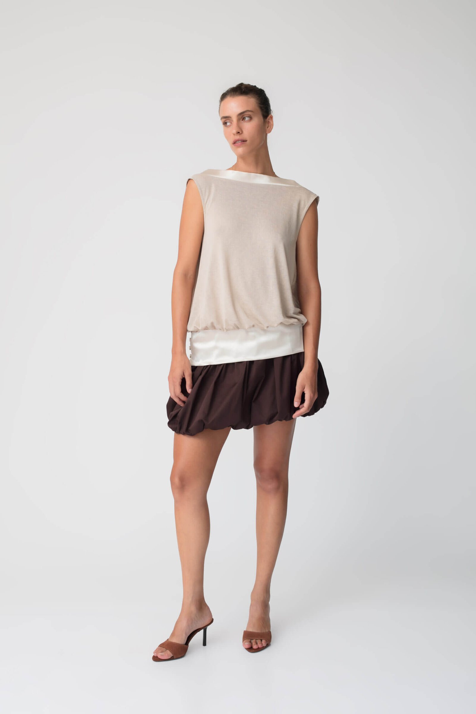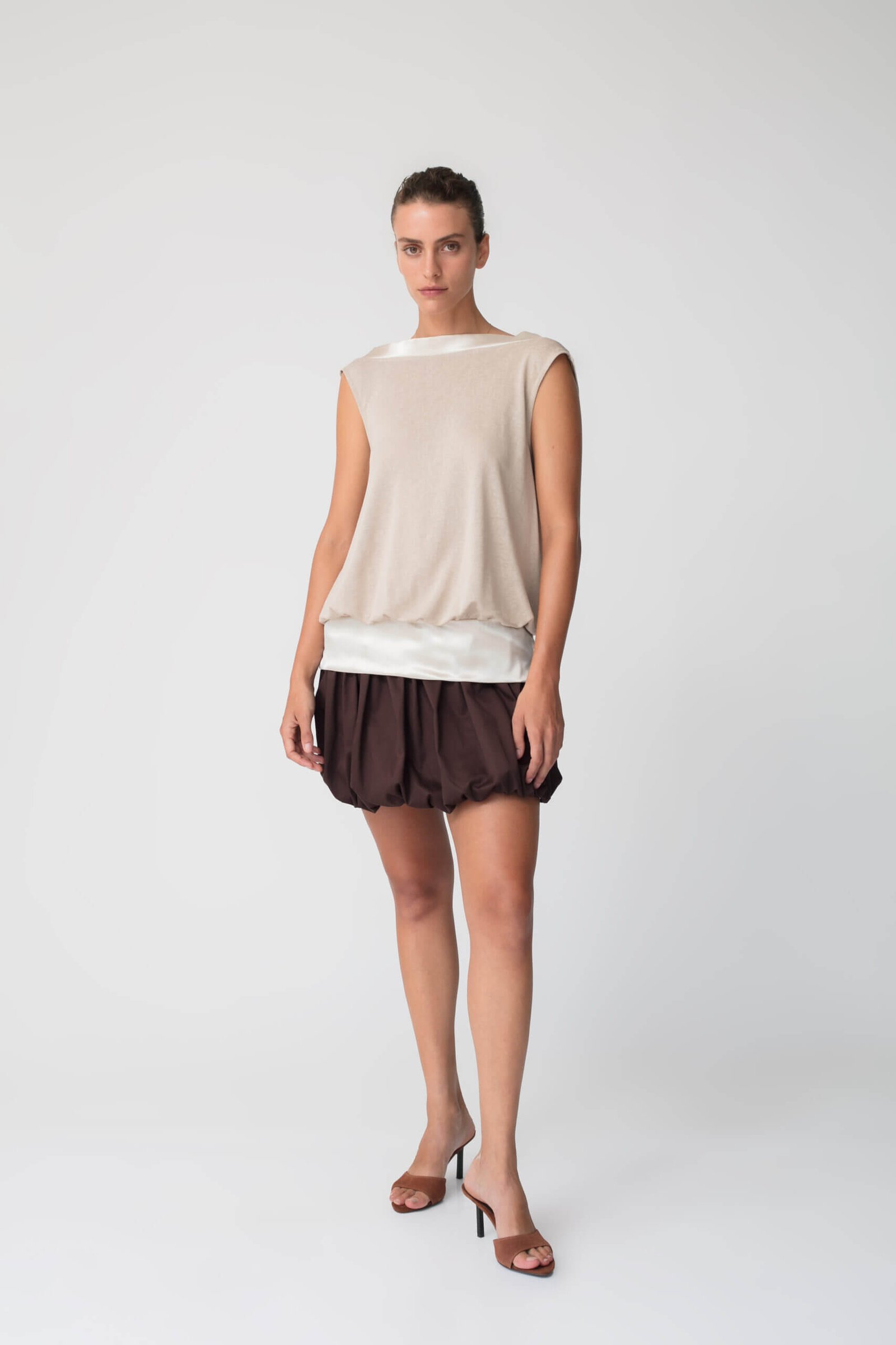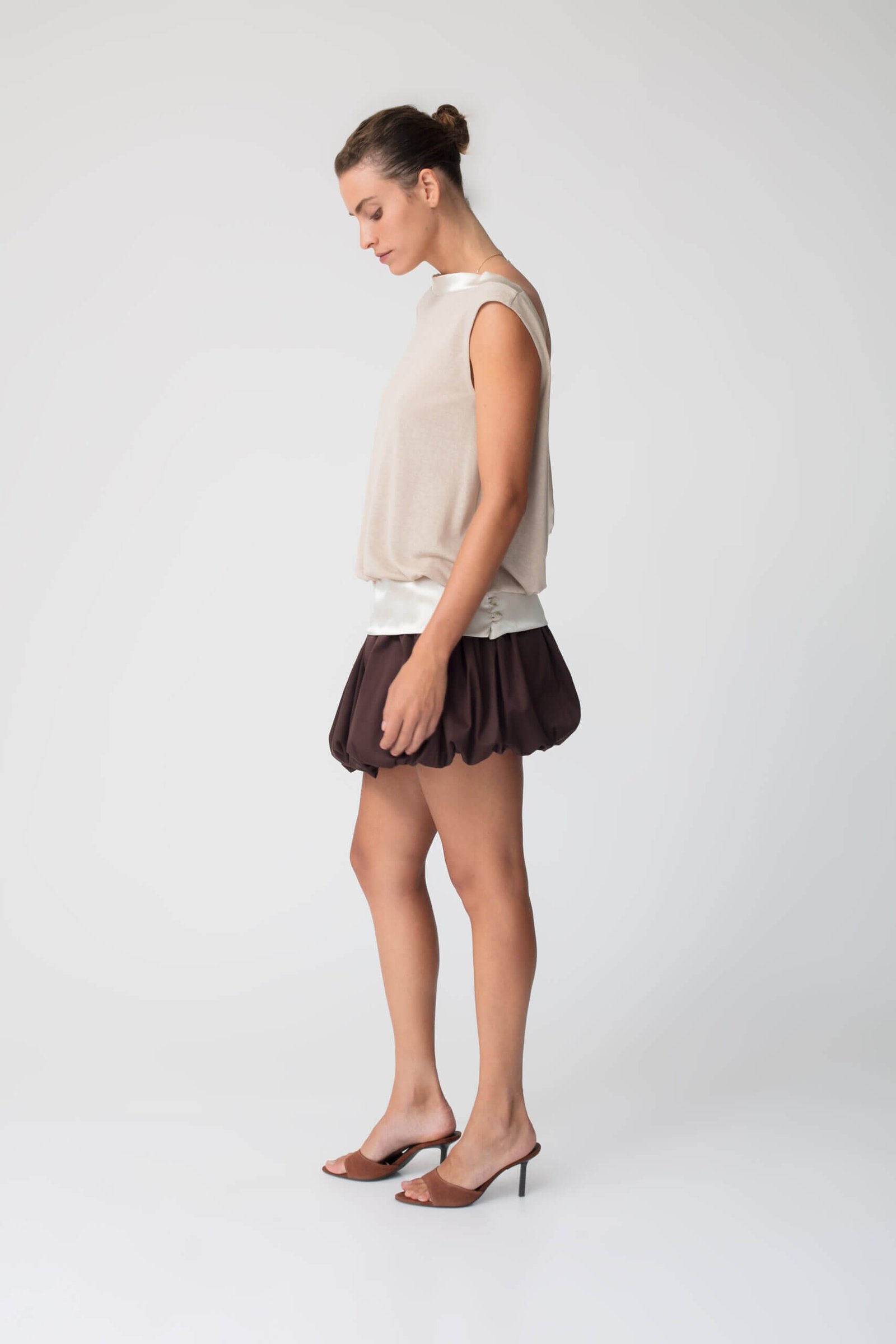 Made from crisp cotton-drill, this miniskirt is gathered to create a voluminous bubble hem. It sits flatteringly on the waist, with a hidden zipper and an elastic waist band. Available in 3 colors: Scarlet Red, Oak and Charcoal.