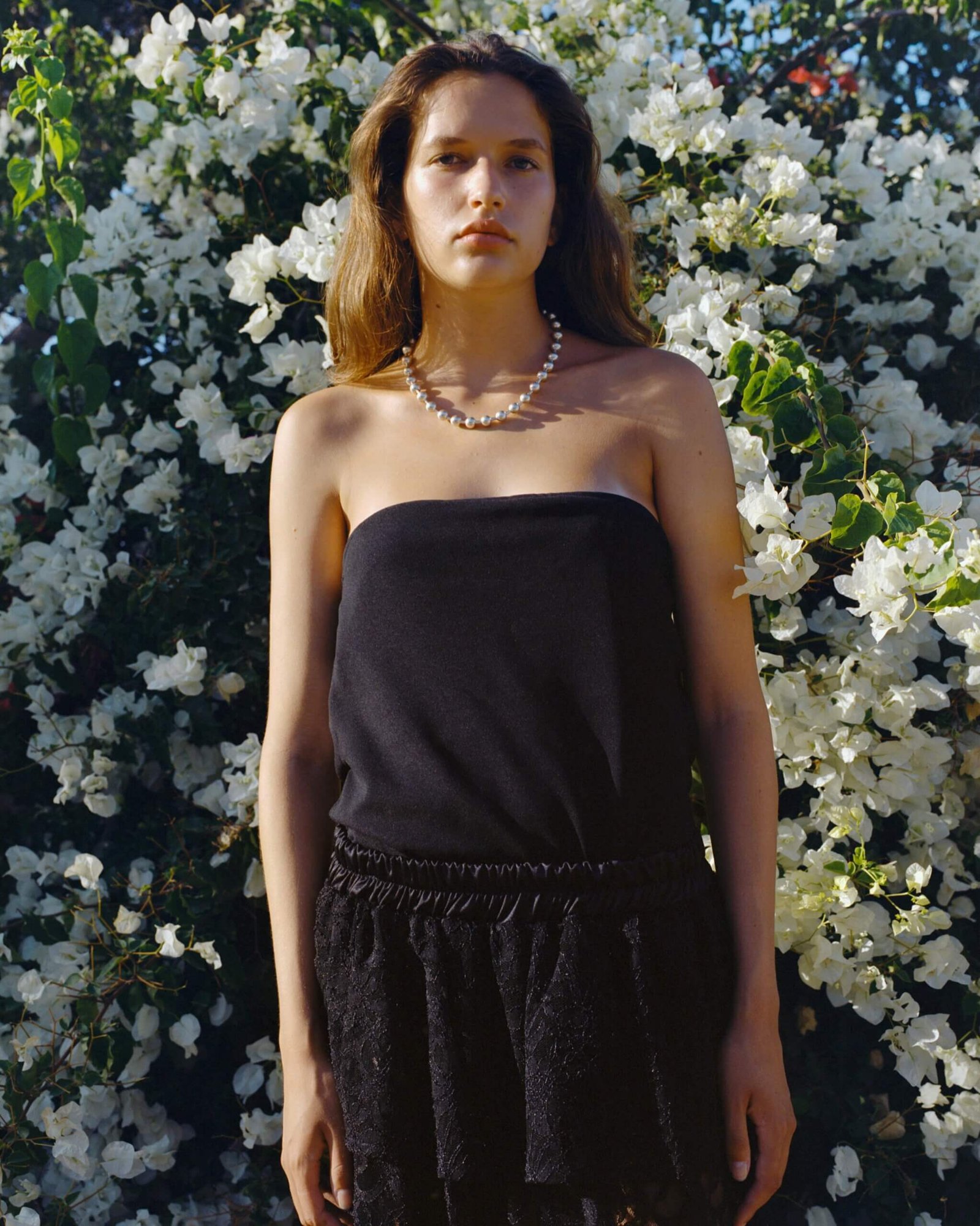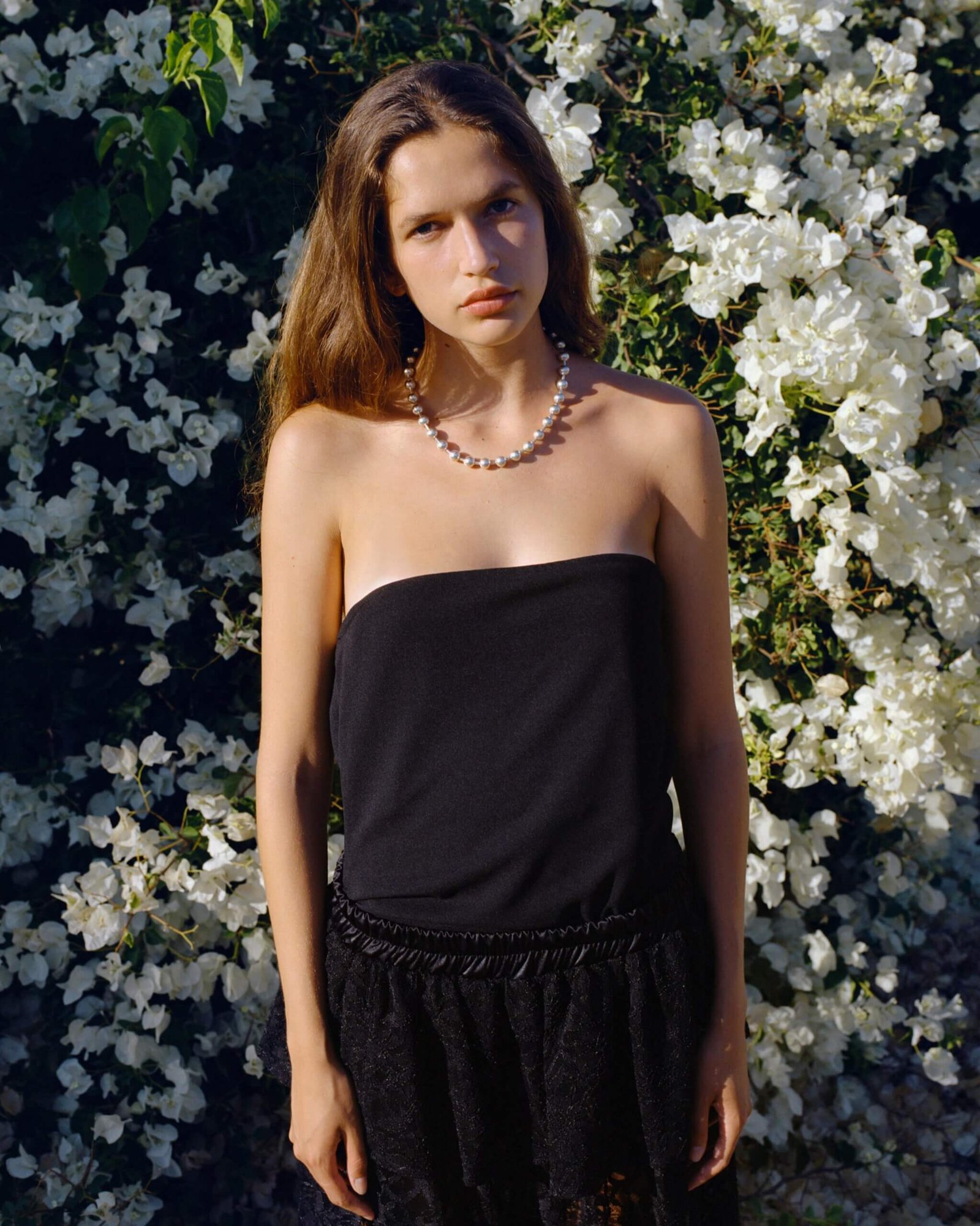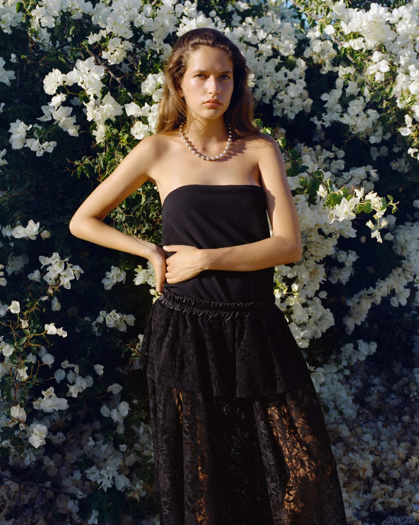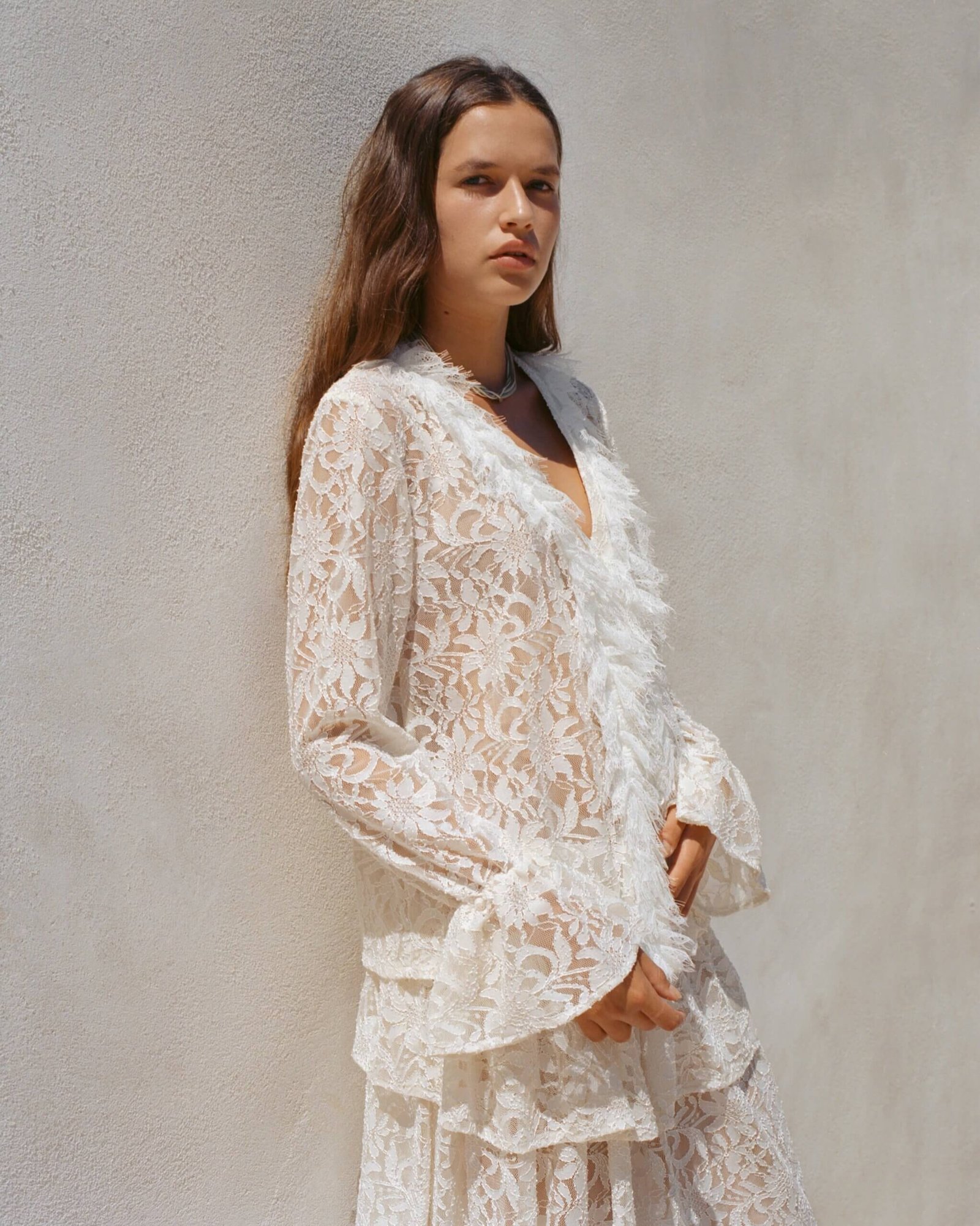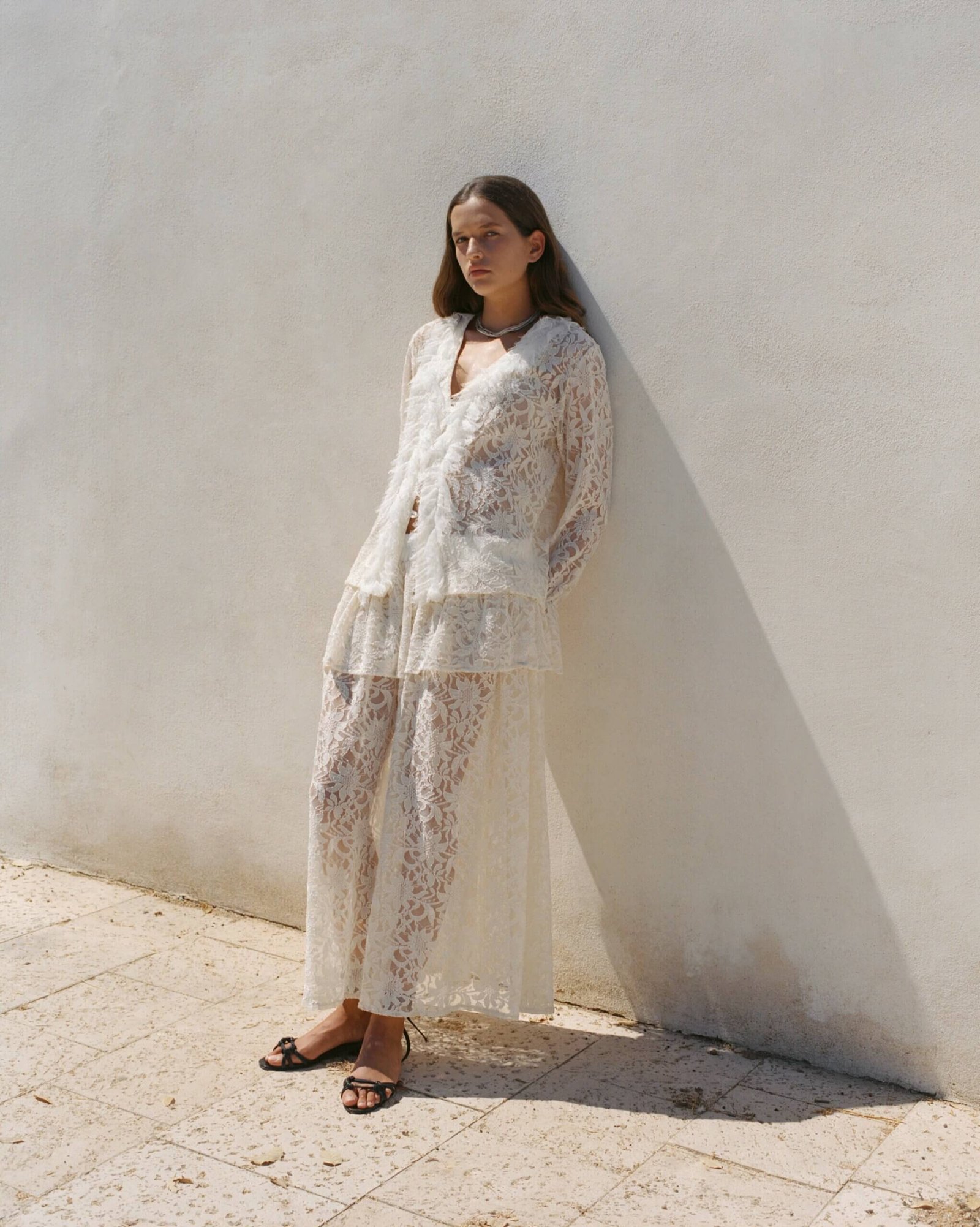 A delicate balance between structure and softness – this layered lace skirt is designed with a comfortable elastic waistband and two gentle tiers: one shorter and one ankle-length lace, offering graceful movement without full transparency. This skirt brings lightness and intention to any look, it’s romance in motion, soft, effortless, and endlessly wearable.
