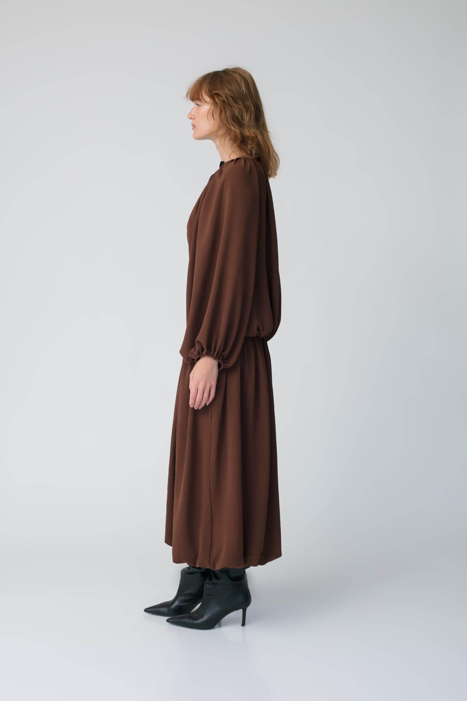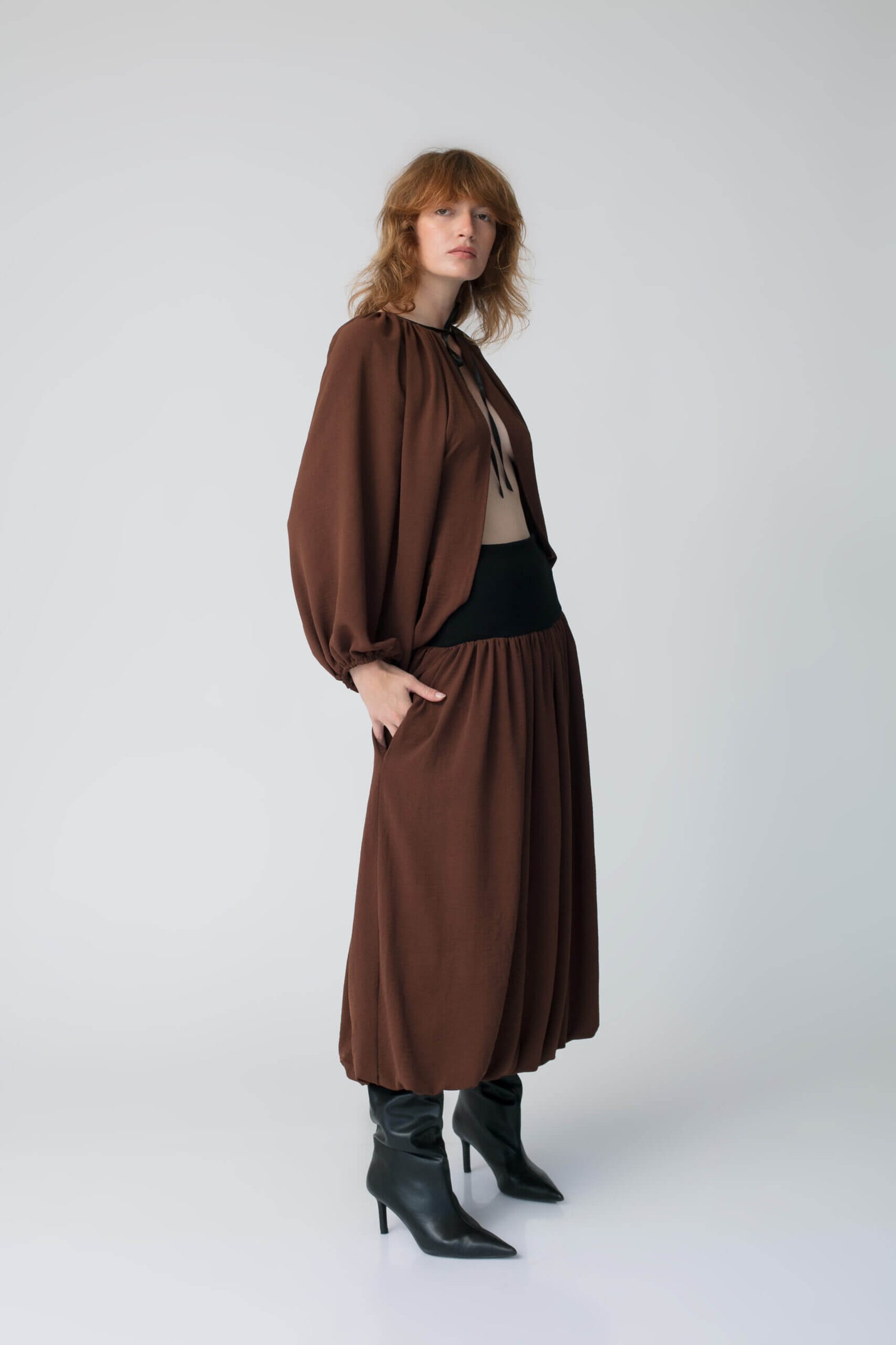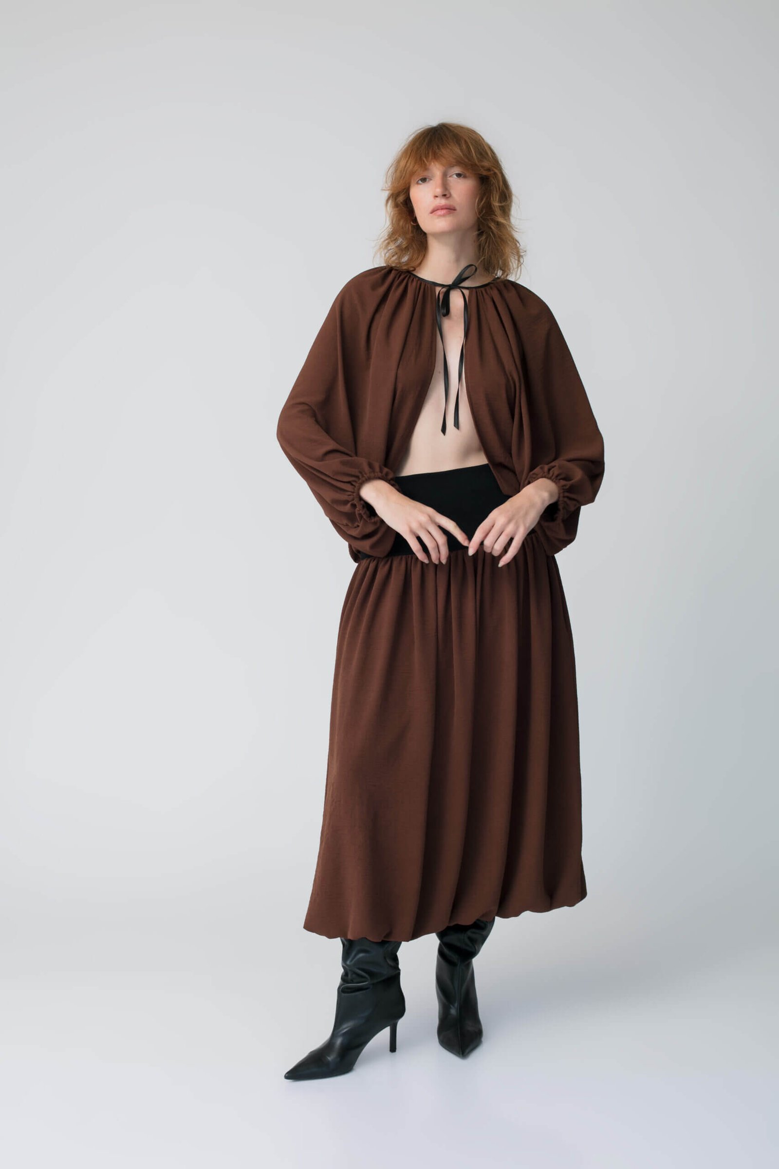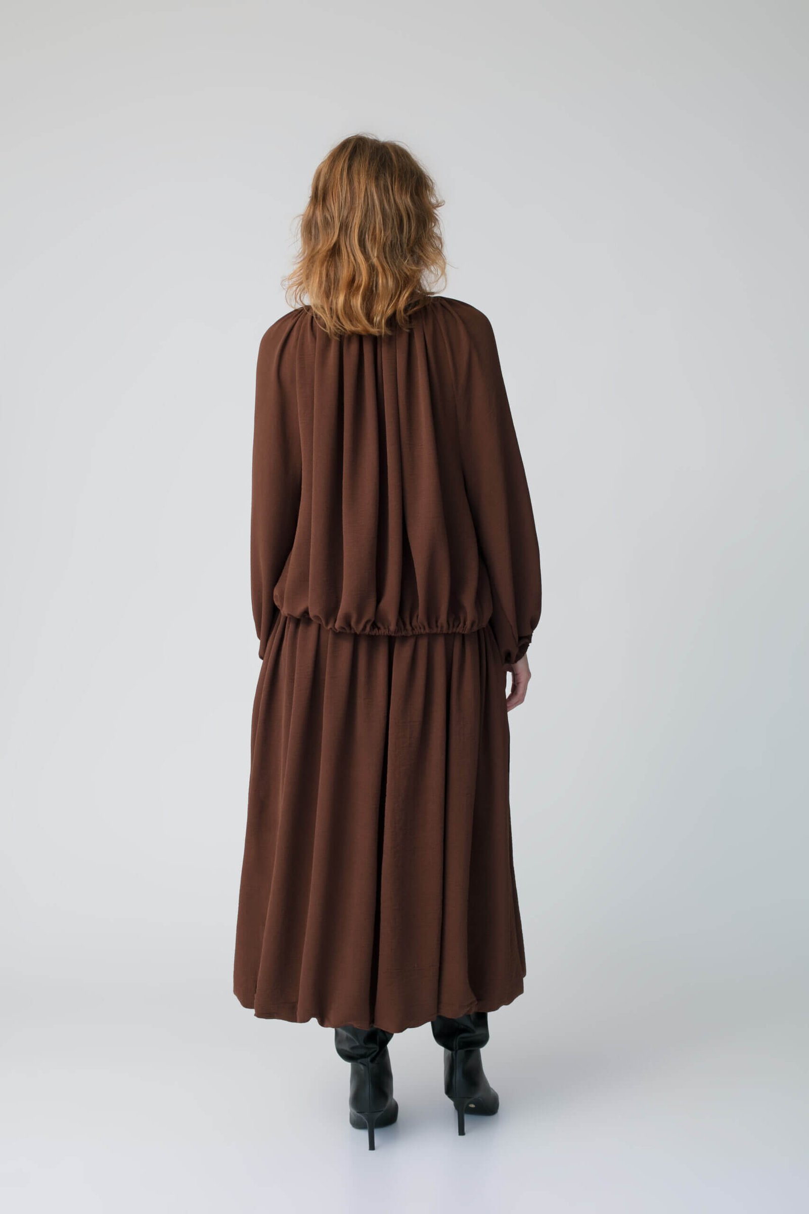 Crafted in fluid crepe, this gathered blouse exudes powerful femininity. Designed with a bateau neckline with ethereal lantern sleeves and a sweeping open back, it is artfully finished by satin ties in contrasting colors. Fits a range of different sizes. Available in 2 colors- Blush and Rust.