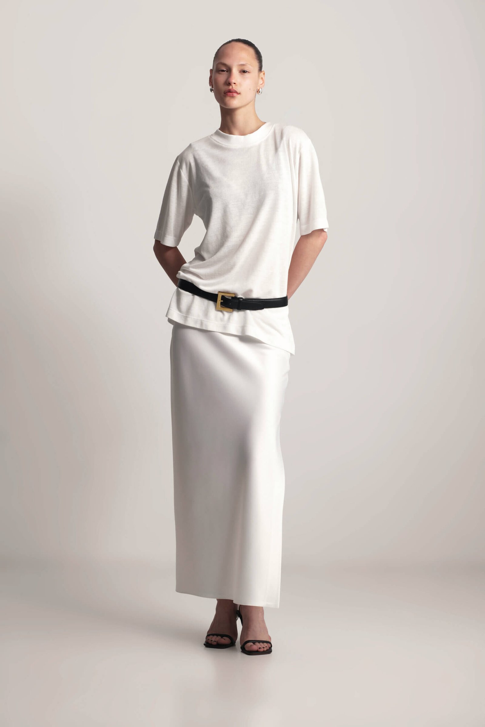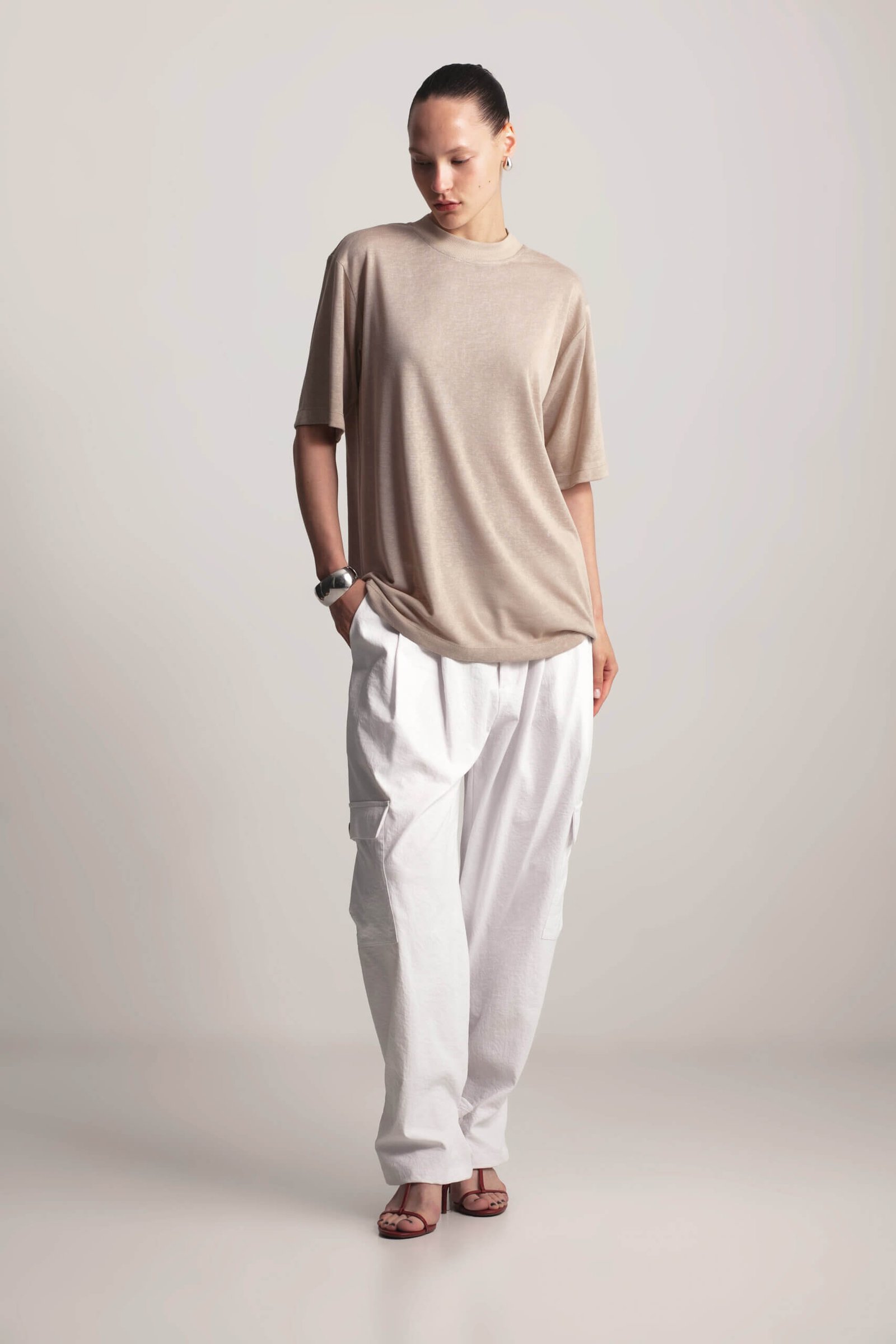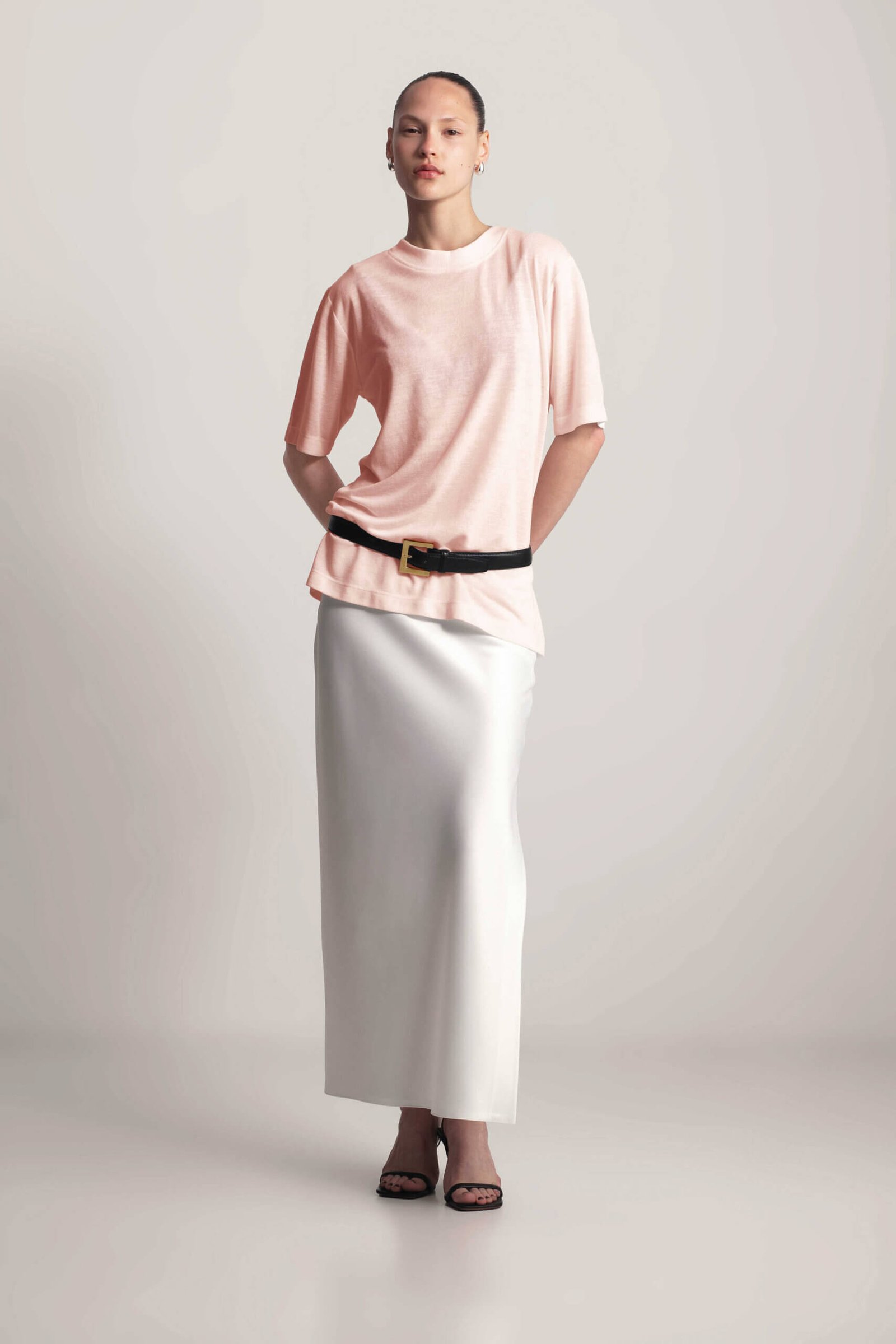 An oversized T-shirt in a boxy fit, with a classic crew neck and dropped shoulders. Made from a soft cotton and linen blend, this timeless T-shirt will quickly become a closet staple