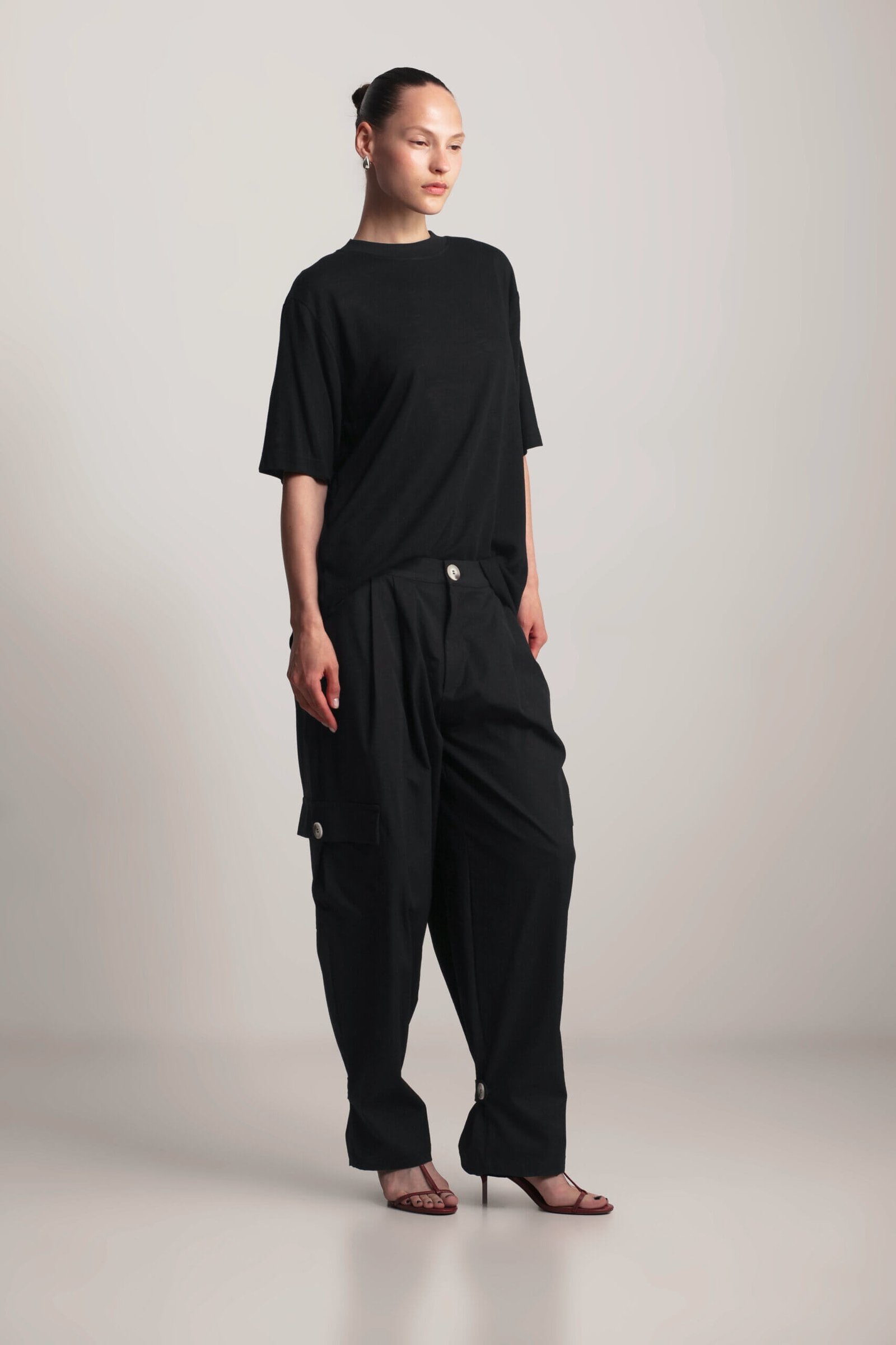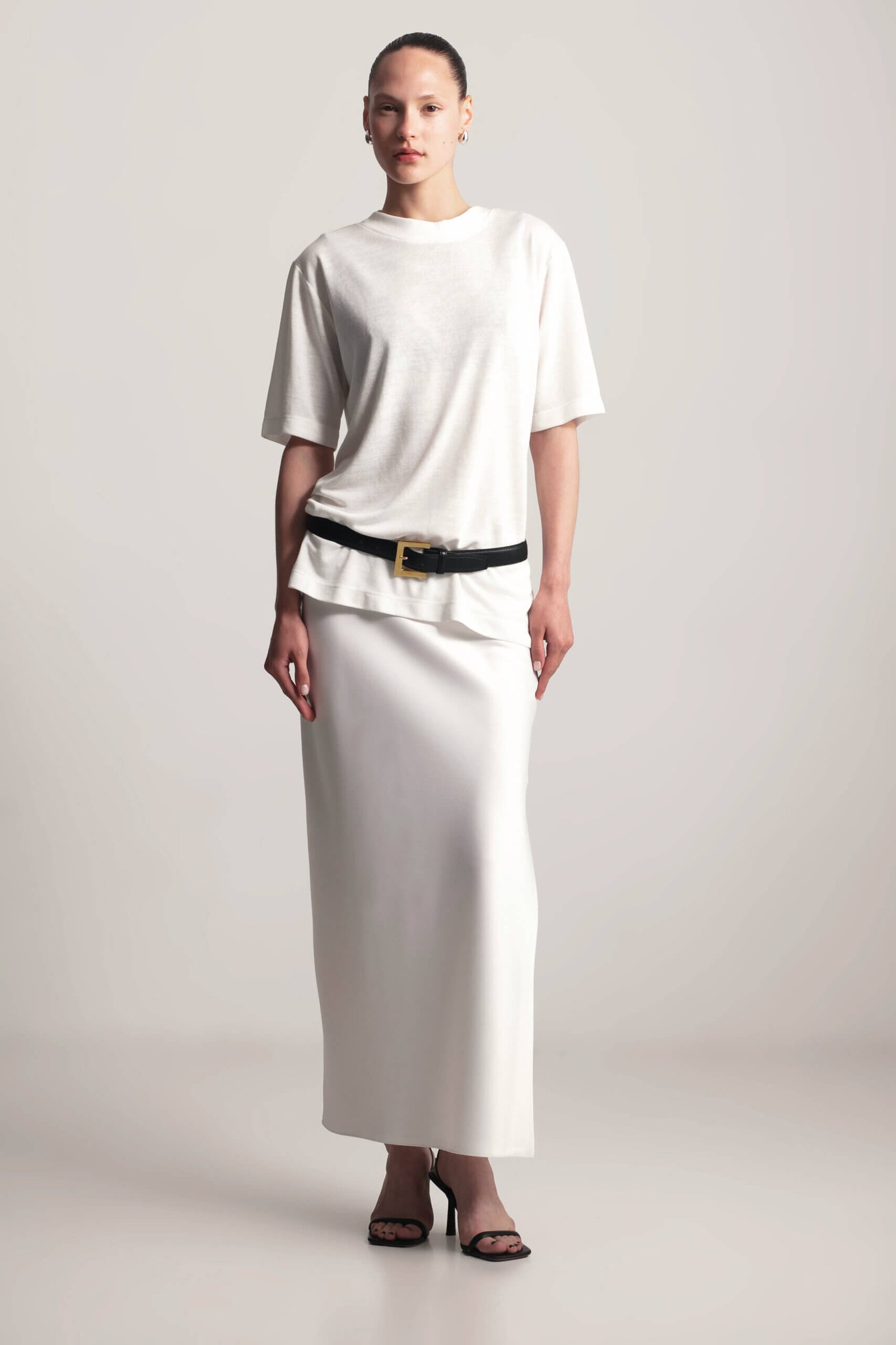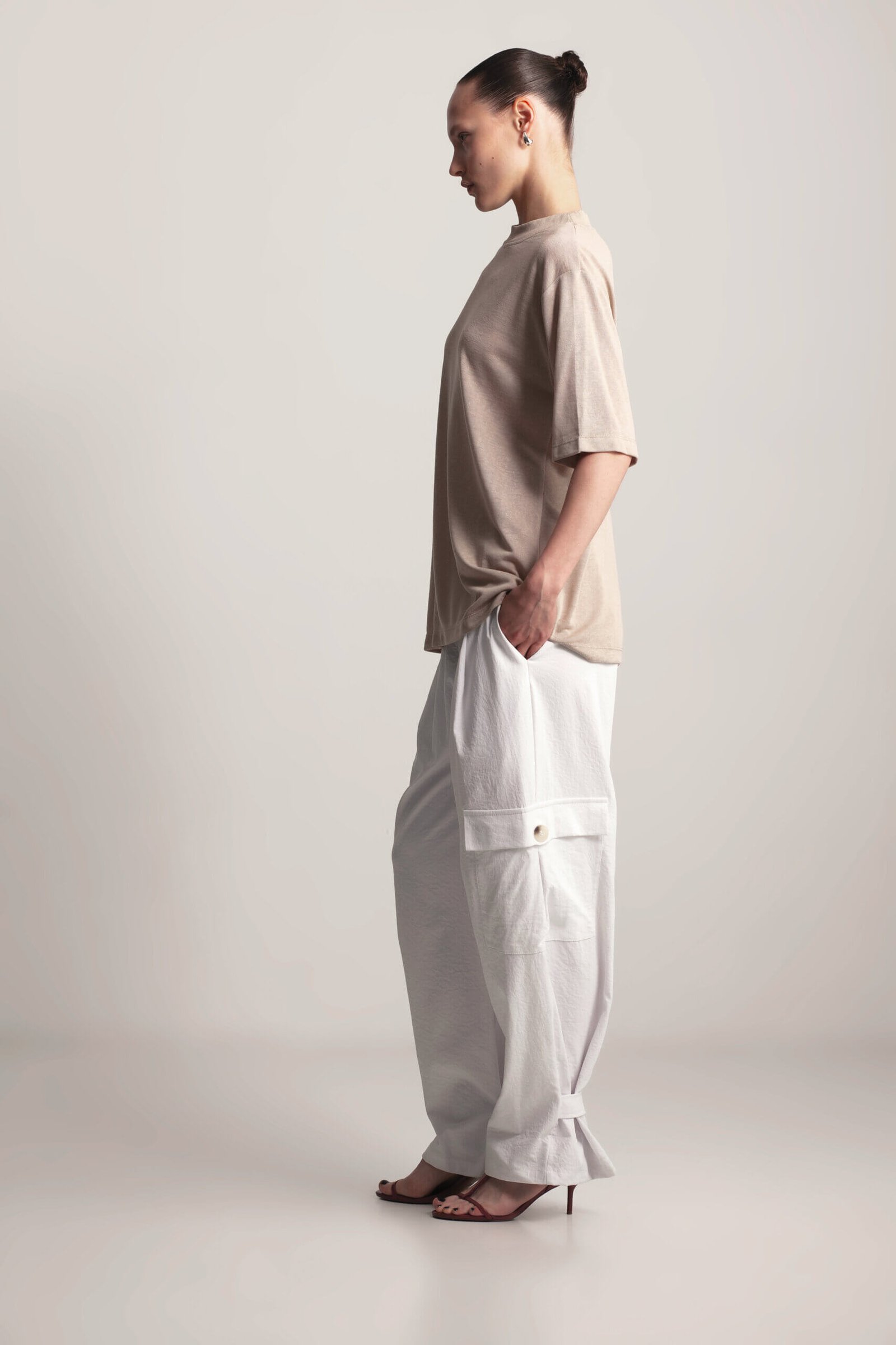 An oversized T-shirt in a boxy fit, with a classic crew neck and dropped shoulders. Made from a soft cotton and linen blend, this timeless T-shirt will quickly become a closet staple
